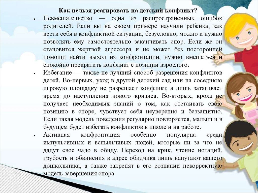 Как нельзя реагировать на детский конфликт?Невмешательство — одна из распространенных ошибок