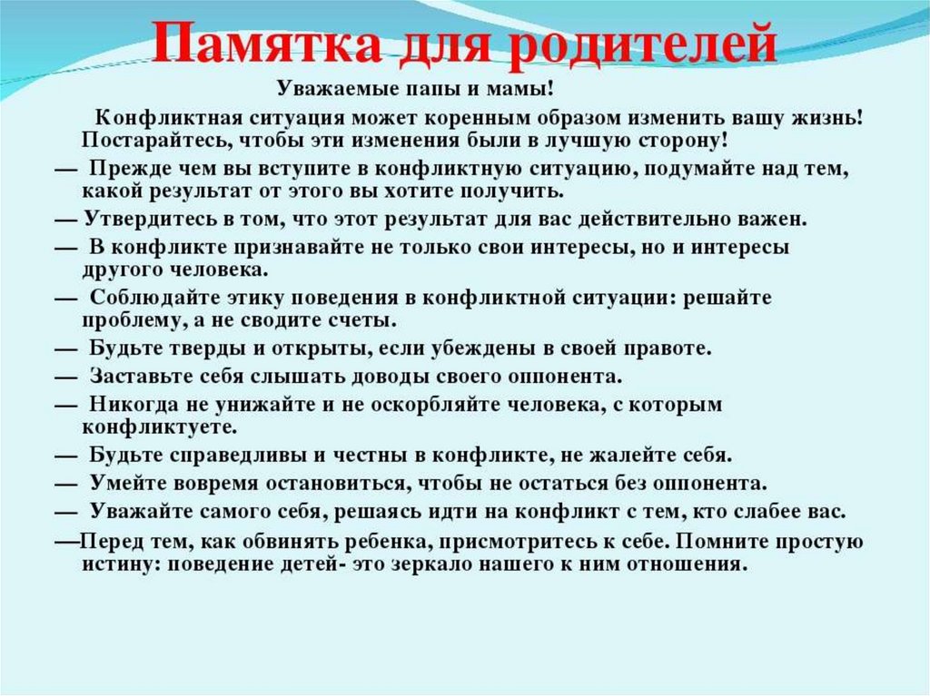 спокойно прекратить конфликт с позиции взрослого.