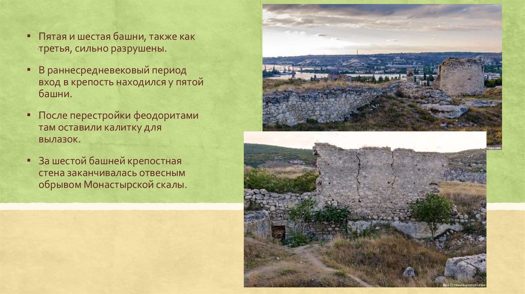 ▪ Пятая и шестая башни, также кактретья, сильно разрушены.
