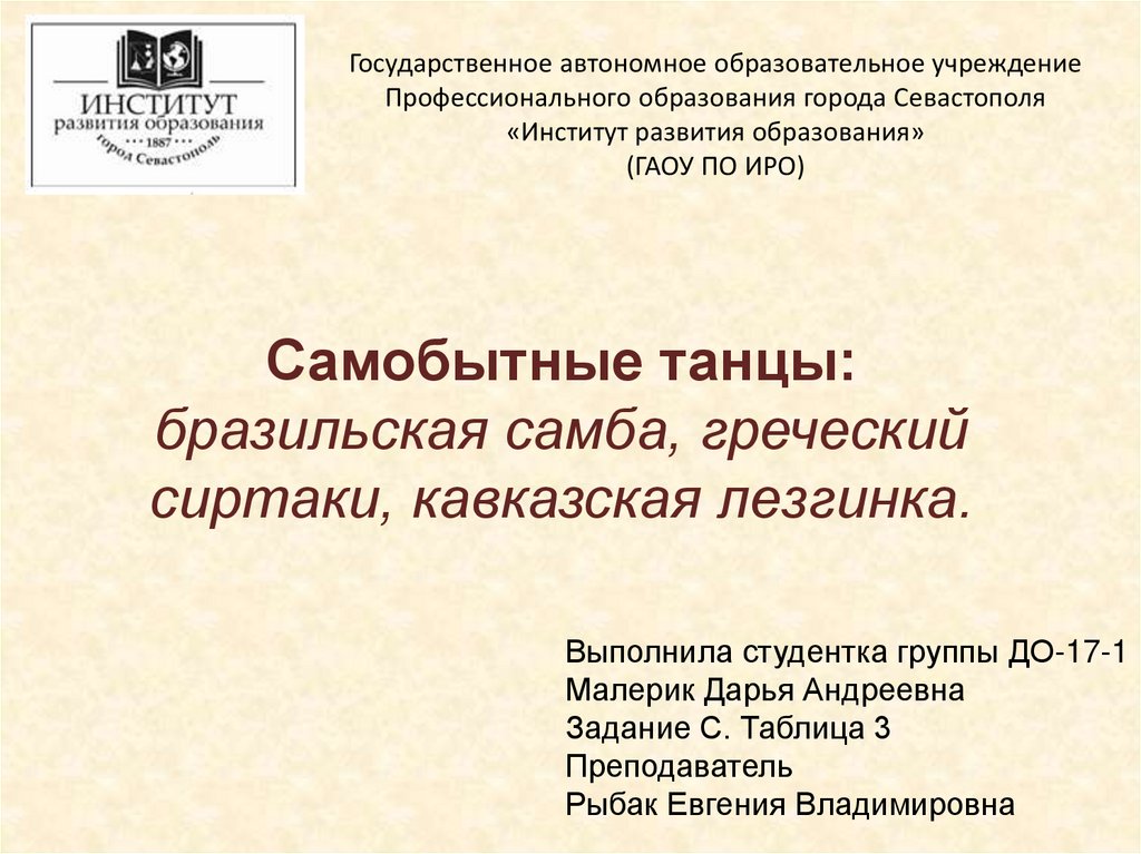 Государственное автономное образовательное учреждениеПрофессионального образования города Севастополя