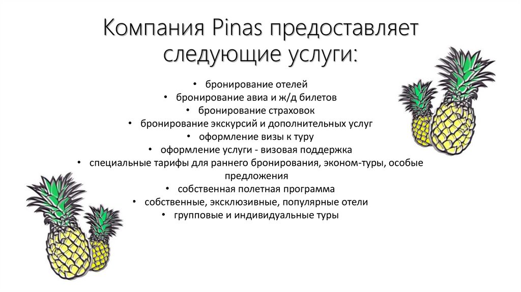 Компания Pinas предоставляетследующие услуги: