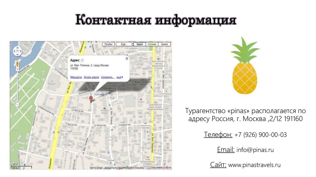 Контактная информацияТурагентство «pinas» располагается по