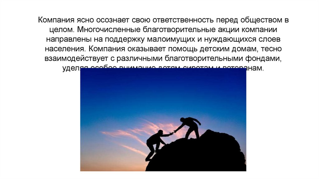 населения. Компания оказывает помощь детским домам, тесно