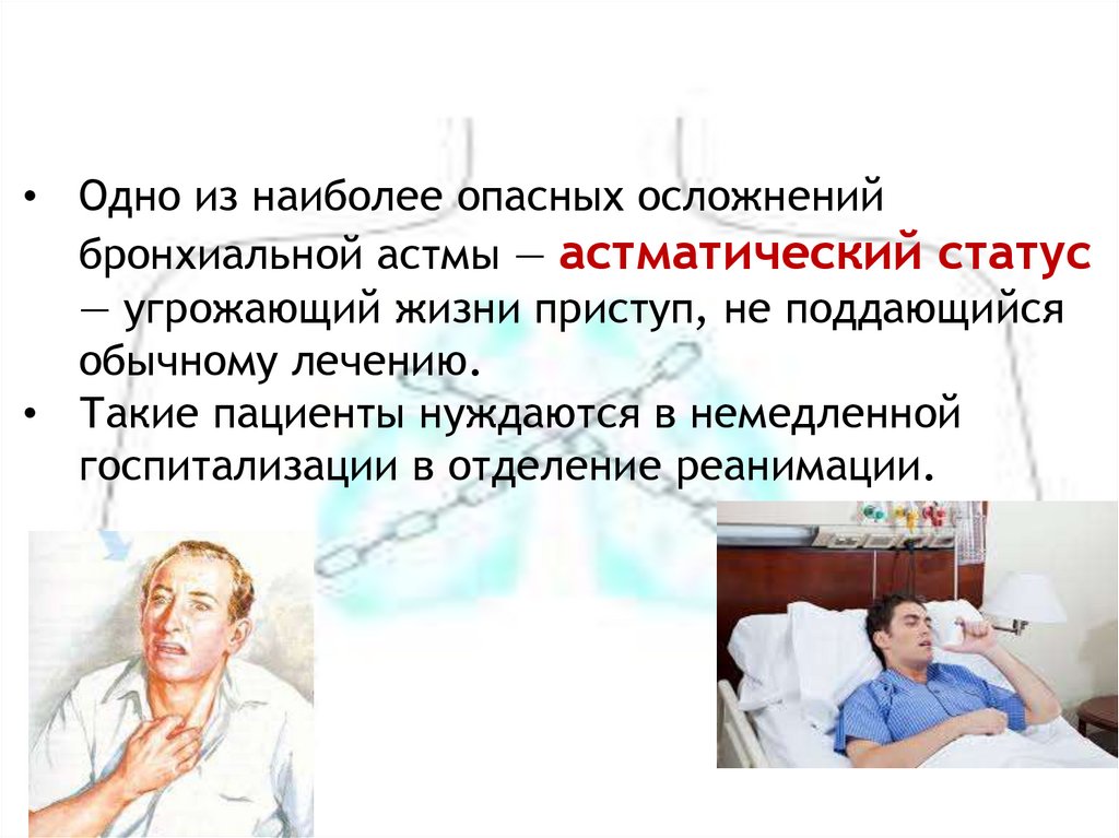 • Одно из наиболее опасных осложненийбронхиальной астмы — астматический статус