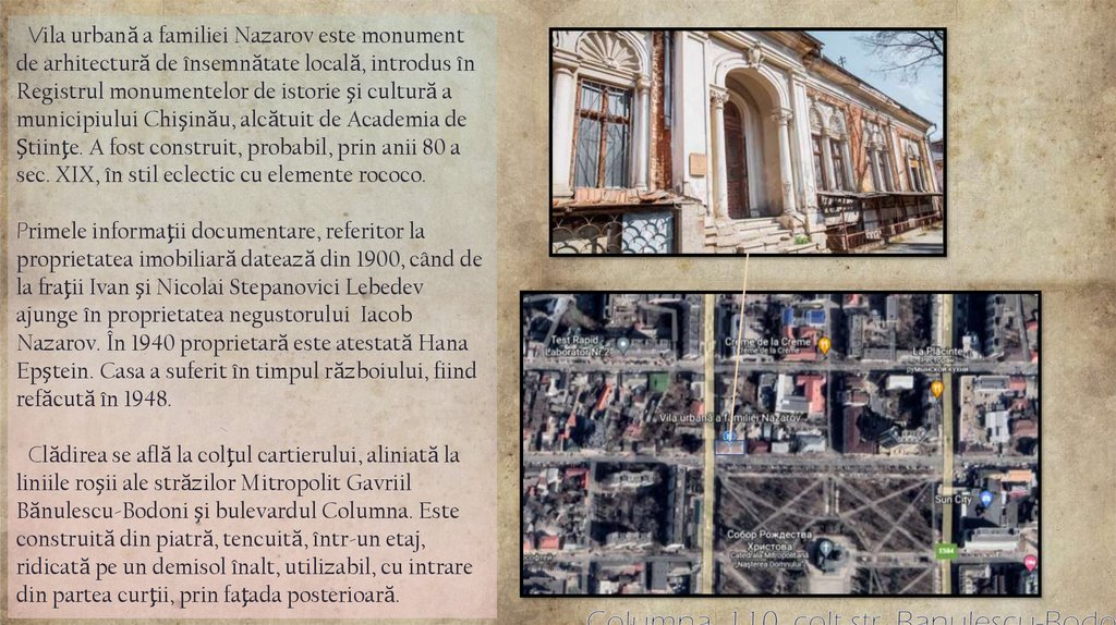 Vila urbană a familiei Nazarov este monumentde arhitectură de însemnătate locală, introdus în