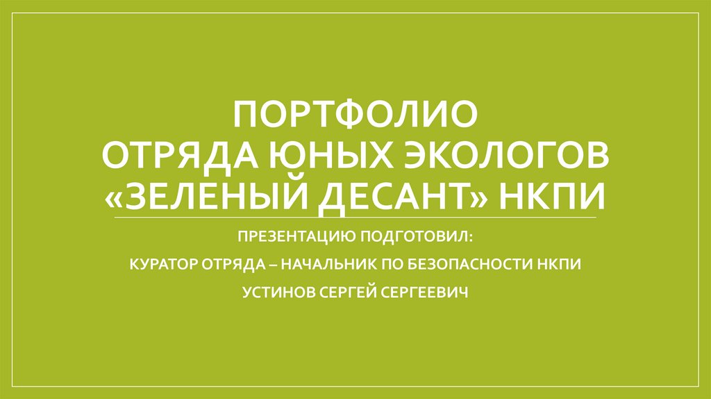 1. ПОРТФОЛИО ОТРЯДА ЮНЫХ ЭКОЛОГОВ «ЗЕЛЕНЫЙ ДЕСАНТ» НКПИ