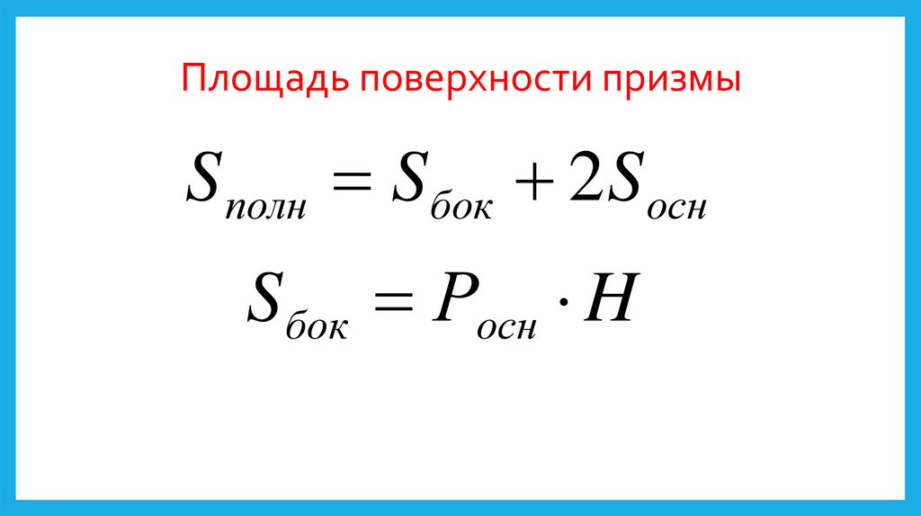 Площадь поверхности призмыS полн S бок 2 S осн