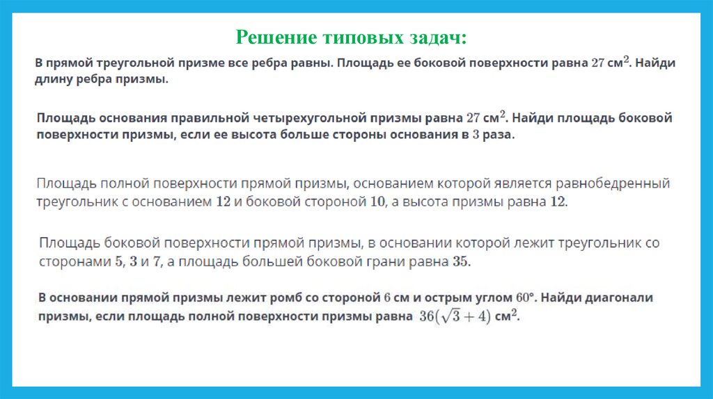 2. Решение задач на развертки призм. Площадь полной и боковой поверхности.