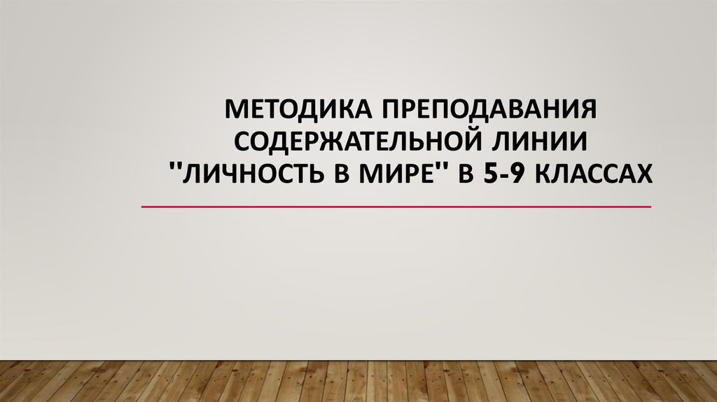 1. Методика преподавания содержательной линии "Личность в мире" в 5-9 классах