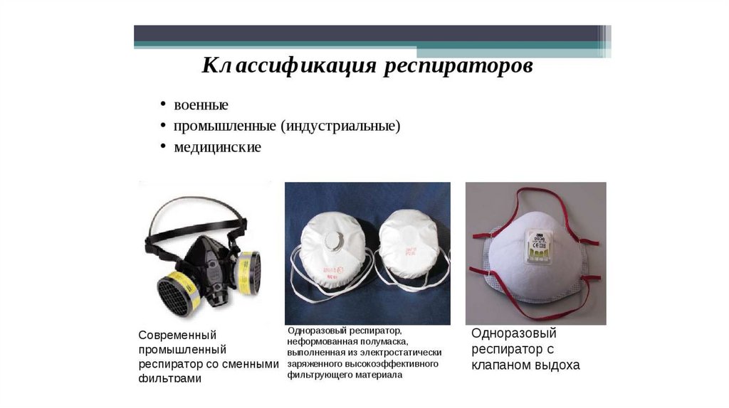 По назначению:Индивидуальные средства защиты органов дыхания (СИЗОД)