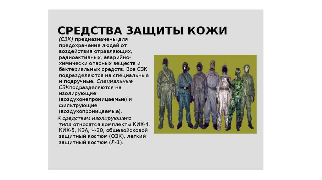 • Средства индивидуальной защиты(СИЗ) - специально разработанные