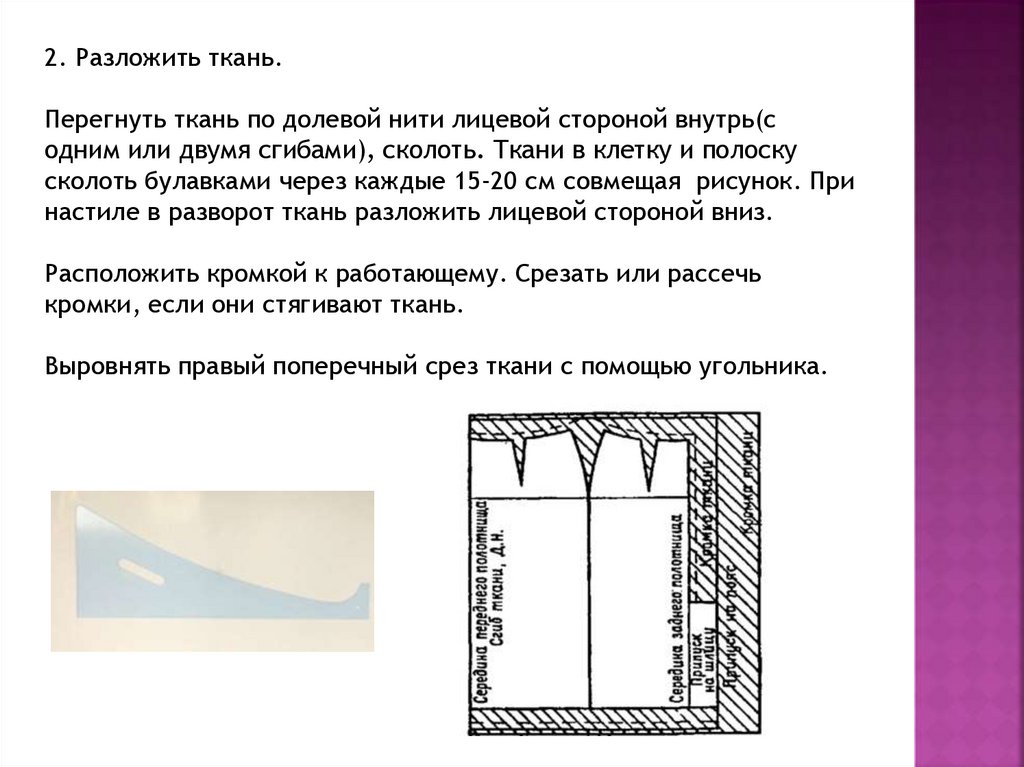 одним или двумя сгибами), сколоть. Ткани в клетку и полоску