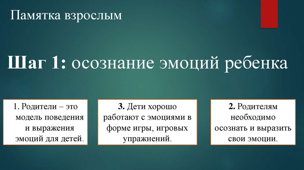 Памятка взрослымШаг 1: осознание эмоций ребенка