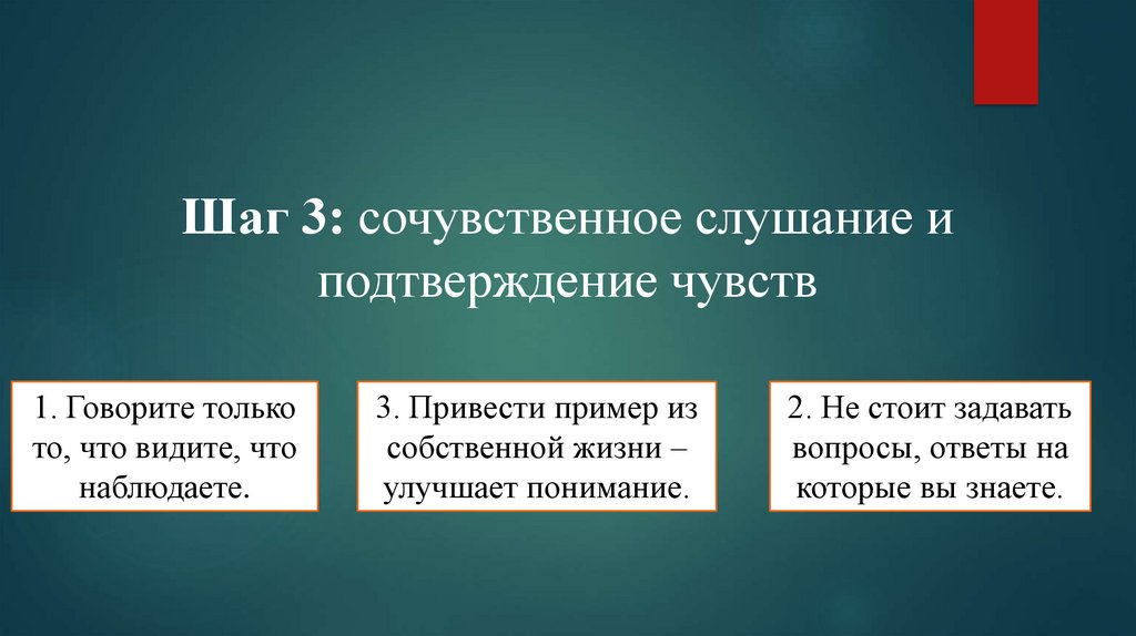 Шаг 3: сочувственное слушание иподтверждение чувств