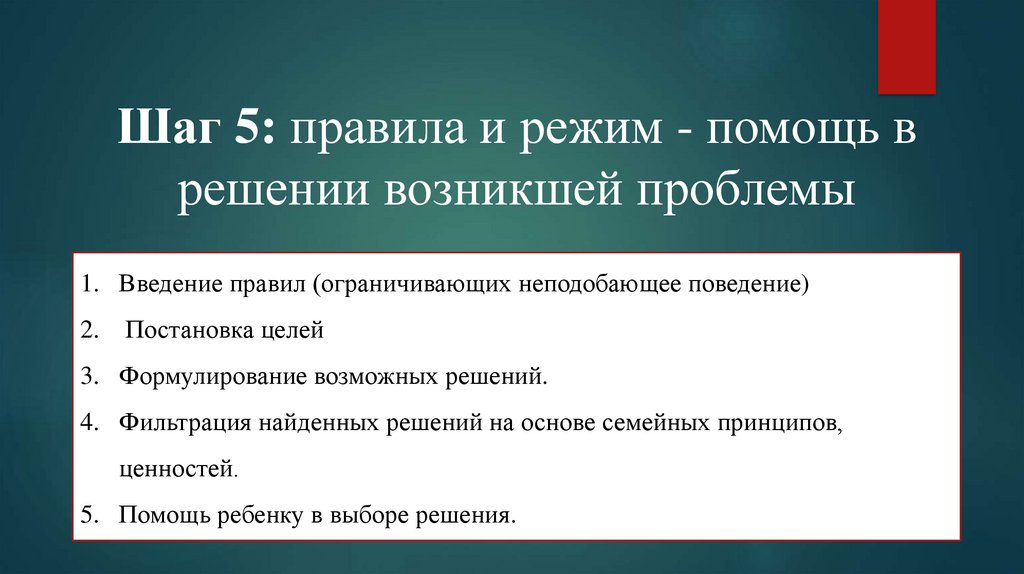 Шаг 5: правила и режим - помощь врешении возникшей проблемы