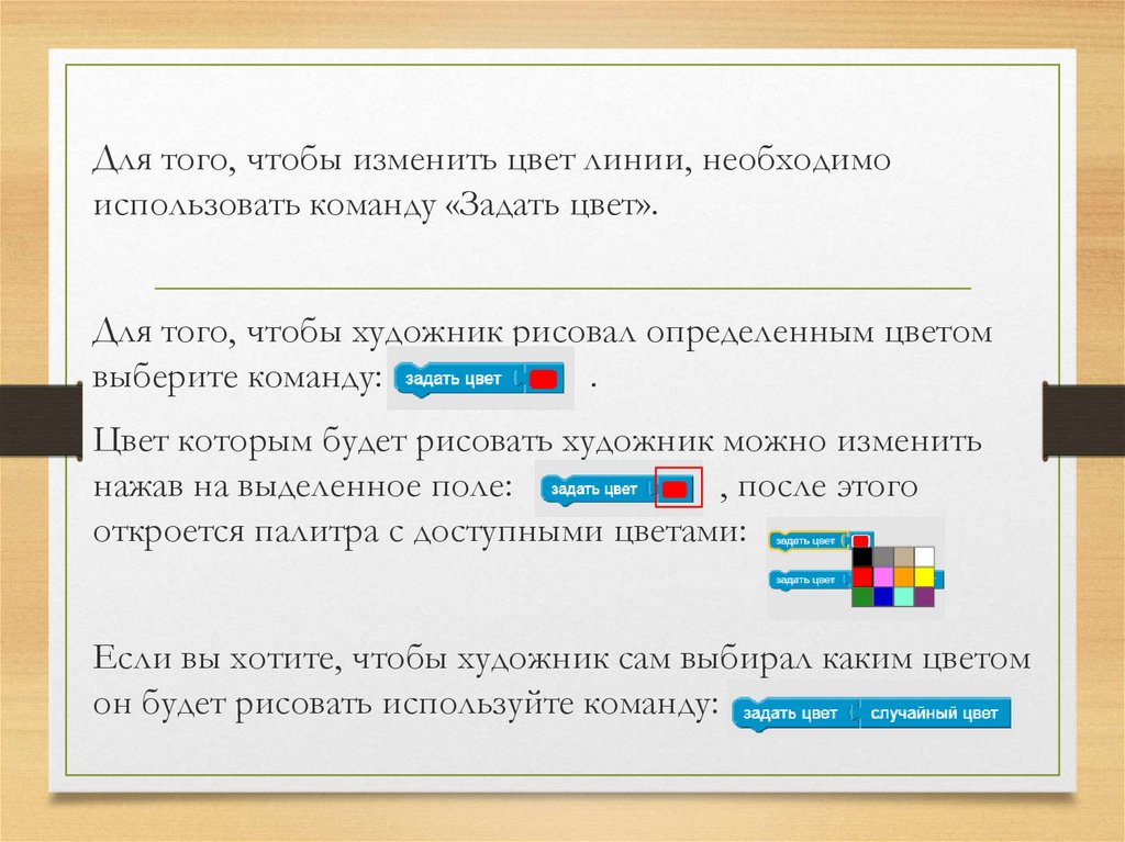 Для того, чтобы изменить цвет линии, необходимоиспользовать команду «Задать цвет».