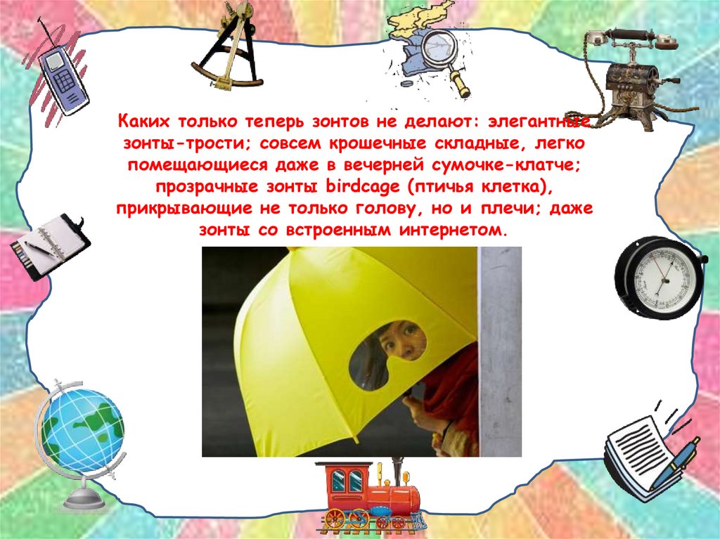 Каких только теперь зонтов не делают: элегантныезонты-трости; совсем крошечные складные, легко