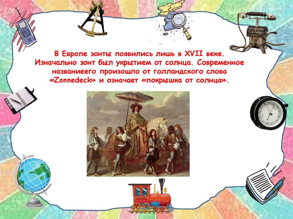 В Европе зонты появились лишь в XVII веке.Изначально зонт был укрытием от солнца. Современное