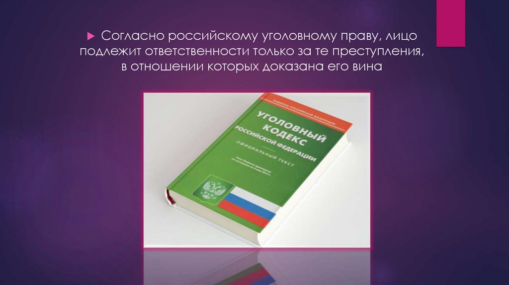 Согласно российскому уголовному праву, лицоподлежит ответственности только за те преступления,