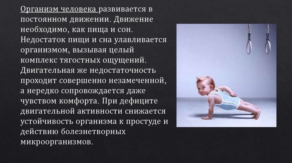 Организм человека развивается впостоянном движении. Движение