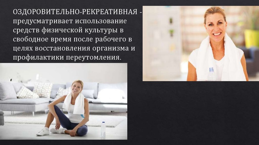 ОЗДОРОВИТЕЛЬНО-РЕКРЕАТИВНАЯ предусматривает использованиесредств физической культуры в