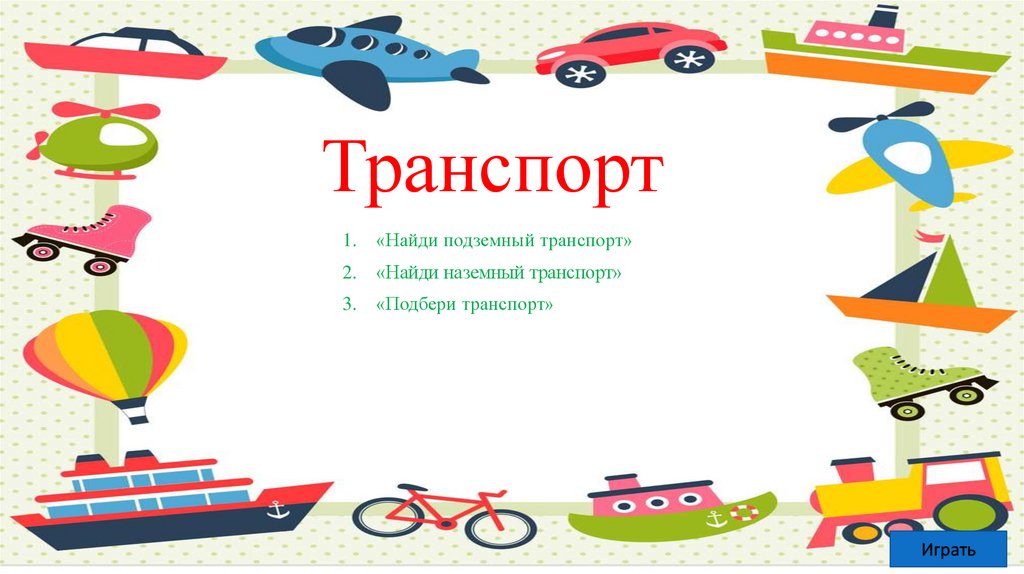 Транспорт: наземный, водный, воздушный. Игры с дошкольниками