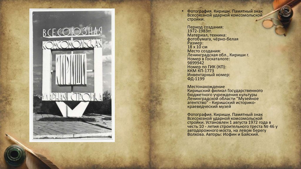Ленинградской области "Музейное агентство" Киришский историко-краеведческий музей
