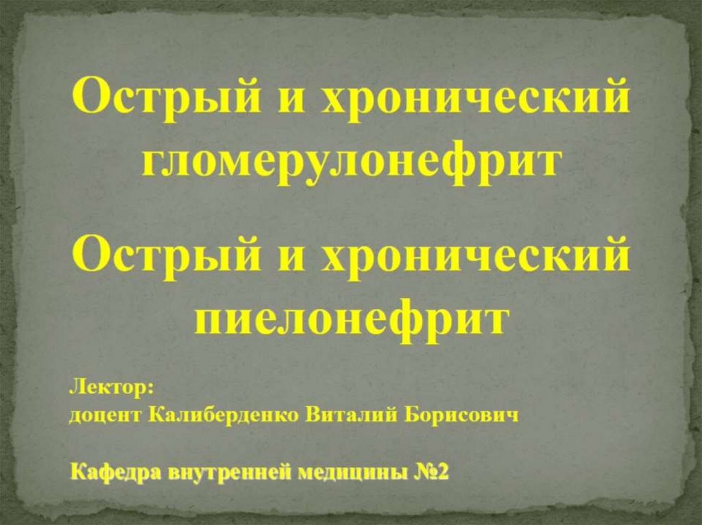 Острый и хронический гломерулонефрит. Острый и хронический пиелонефрит