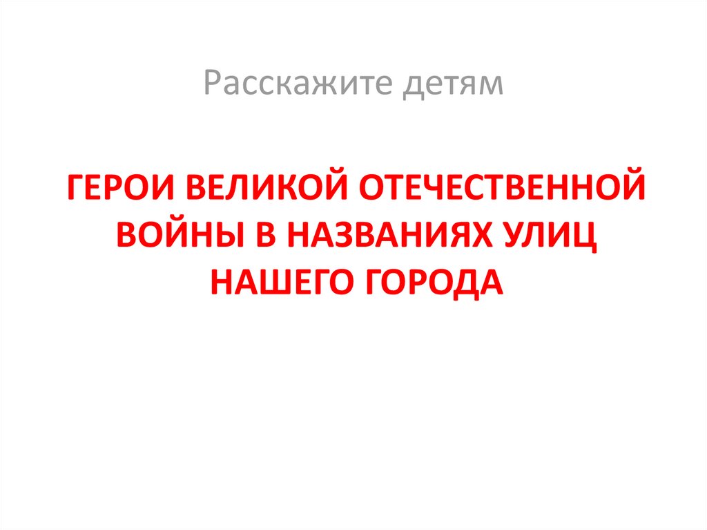 Имена земляков-героев Великой Отечественной войны на карте нашего города. Знать и помнить: имена героев в названиях улиц