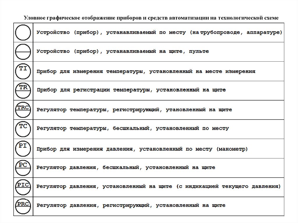 Основные условные обозначения измеряемых и регулируемых величин на технологической схеме