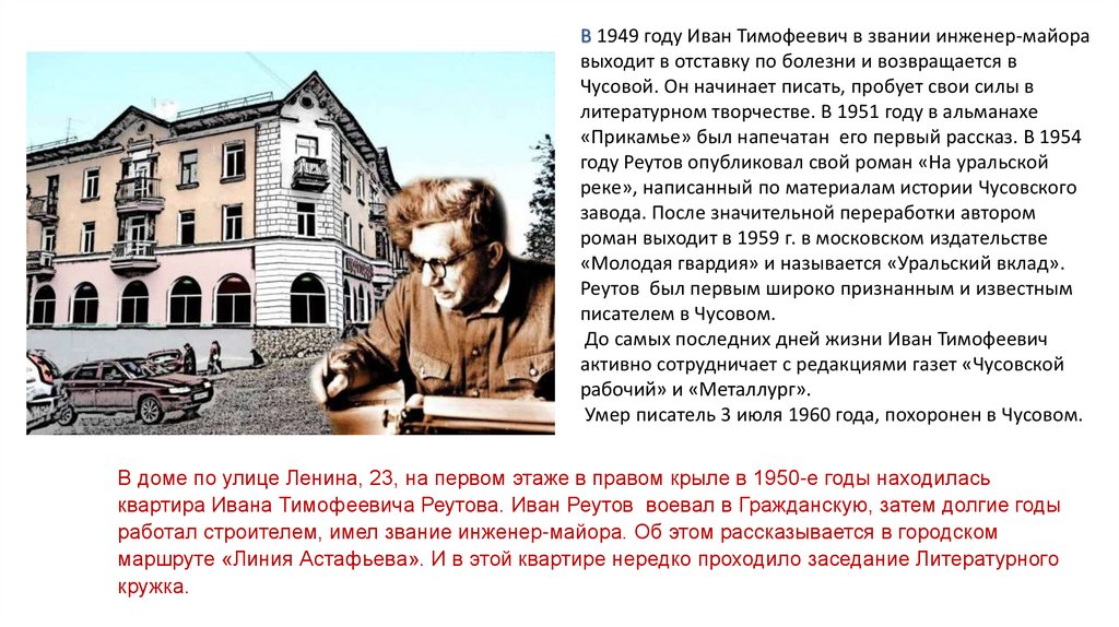 Первый писатель в г. ЧусовомРеутов Иван Тимофеевич родился в 1898 году в