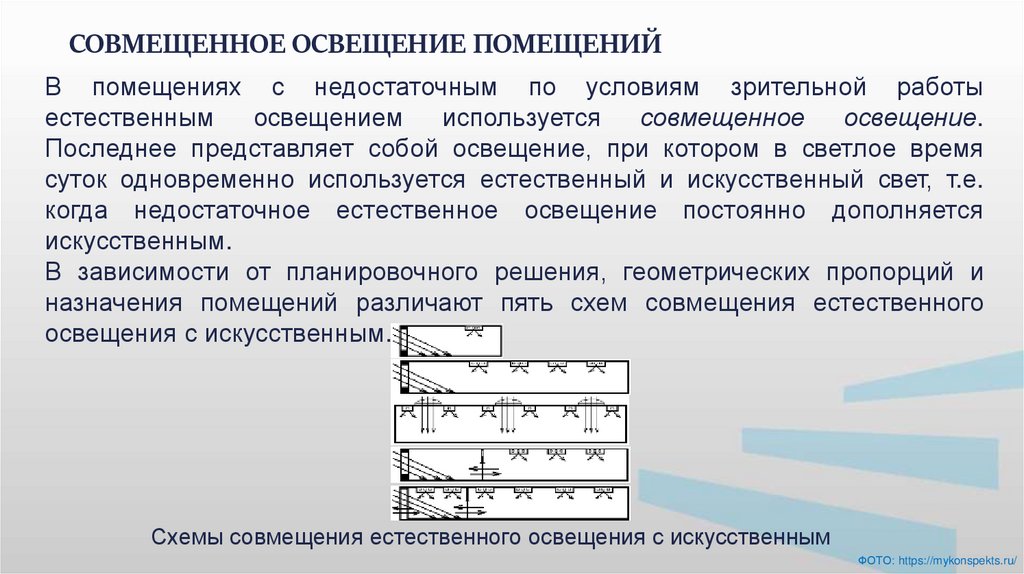 Схемы совмещения естественного освещения с искусственным