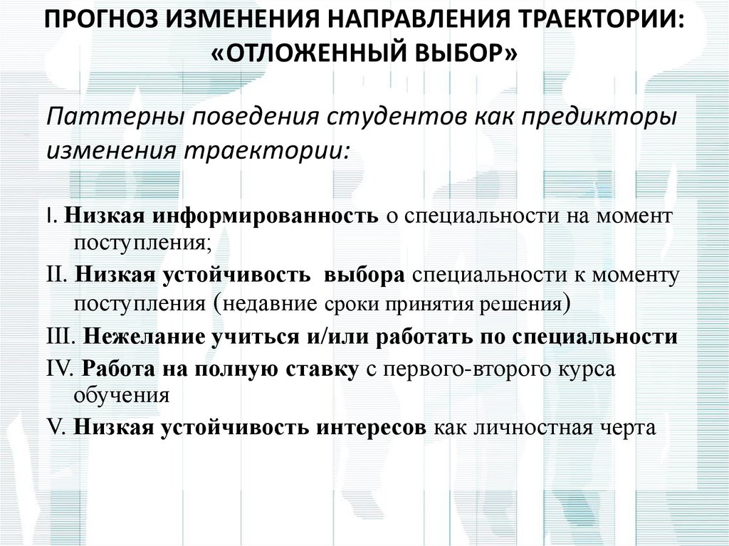 Из всех семейных характеристик образовательный статус родителей имел наибольшуюсвязь с принадлежностью студента к группе отложенного выбора: с его ростом