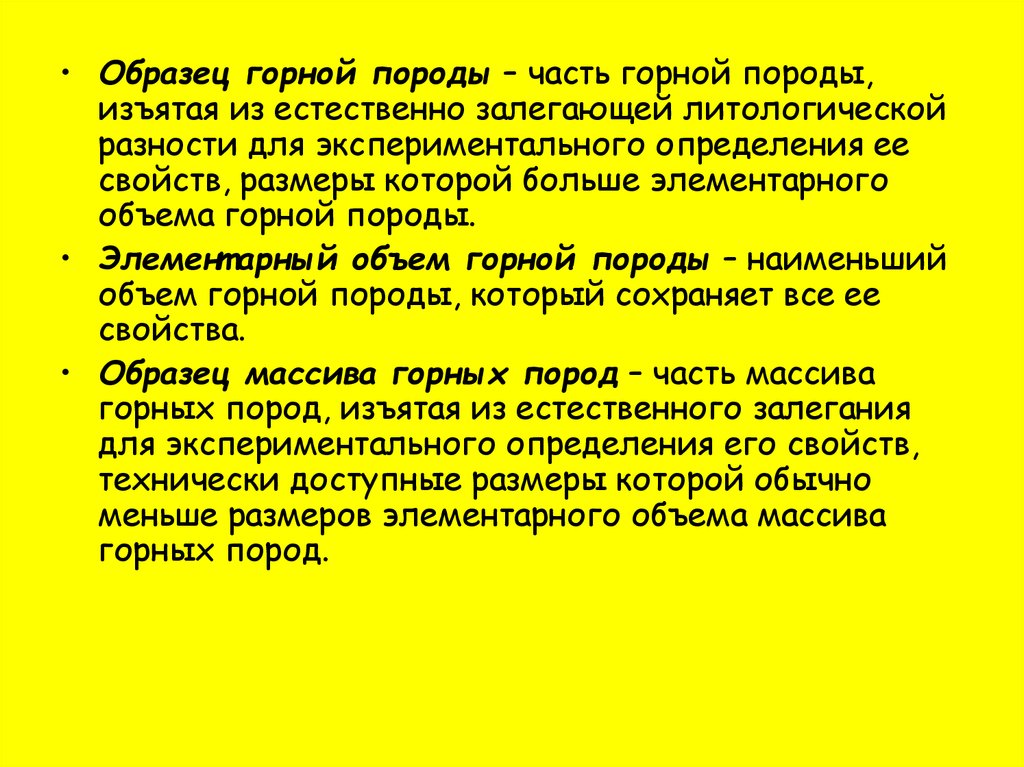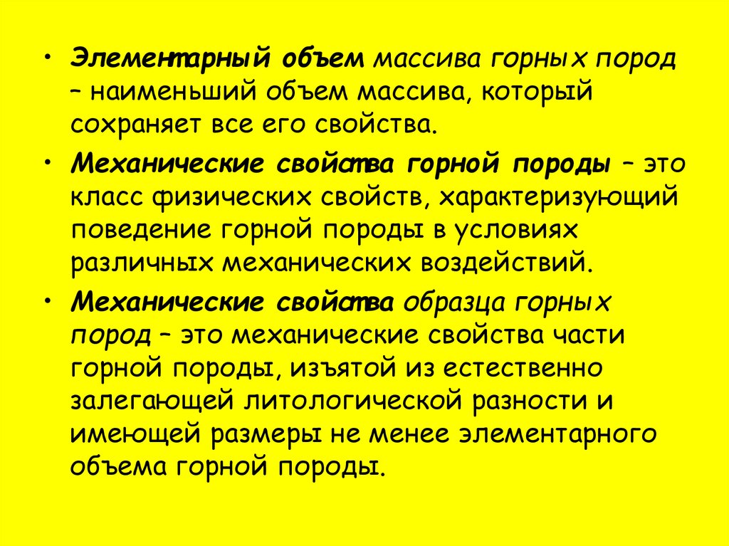 • Элемент арный объем массива горных пород– наименьший объем массива, который