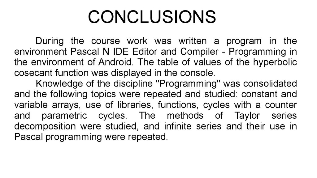 COURSE WORKTabulation of hyperbolic cosecant for argument which