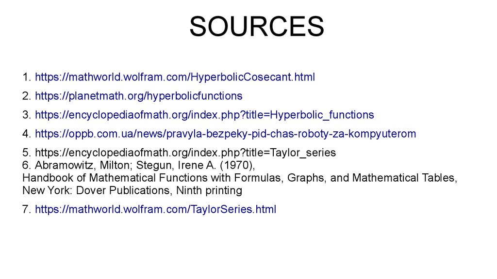 SOURCES1. https://mathworld.wolfram.com/HyperbolicCosecant.html