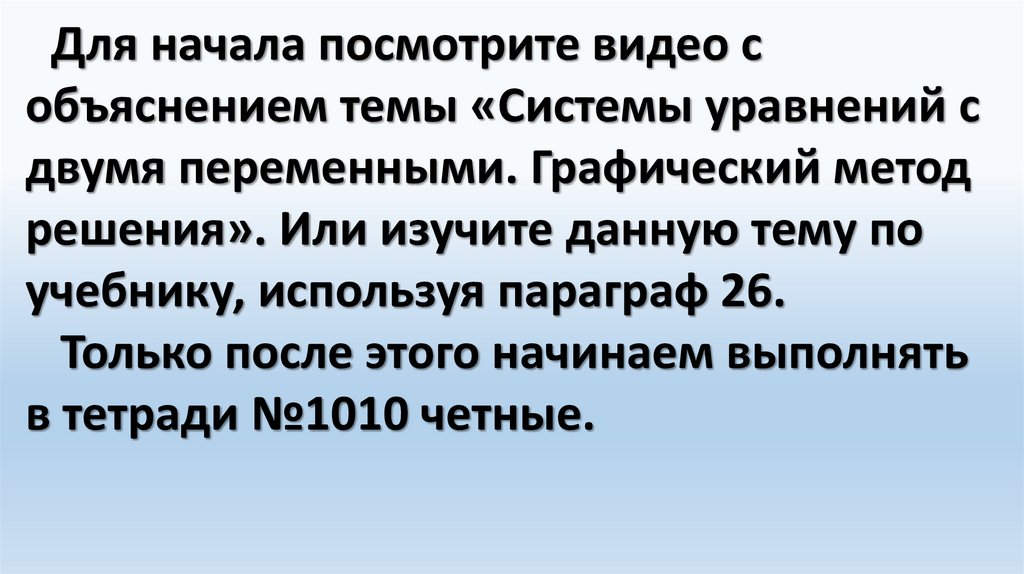 Для начала посмотрите видео собъяснением темы «Системы уравнений с