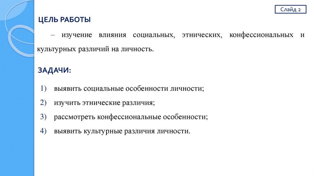– изучение влияния социальных, этнических, конфессиональных и