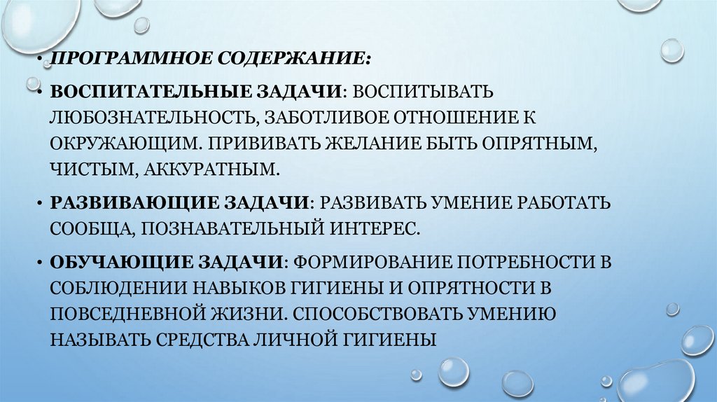 • ПРОГРАММНОЕ СОДЕРЖАНИЕ:• ВОСПИТАТЕЛЬНЫЕ ЗАДАЧИ: ВОСПИТЫВАТЬ