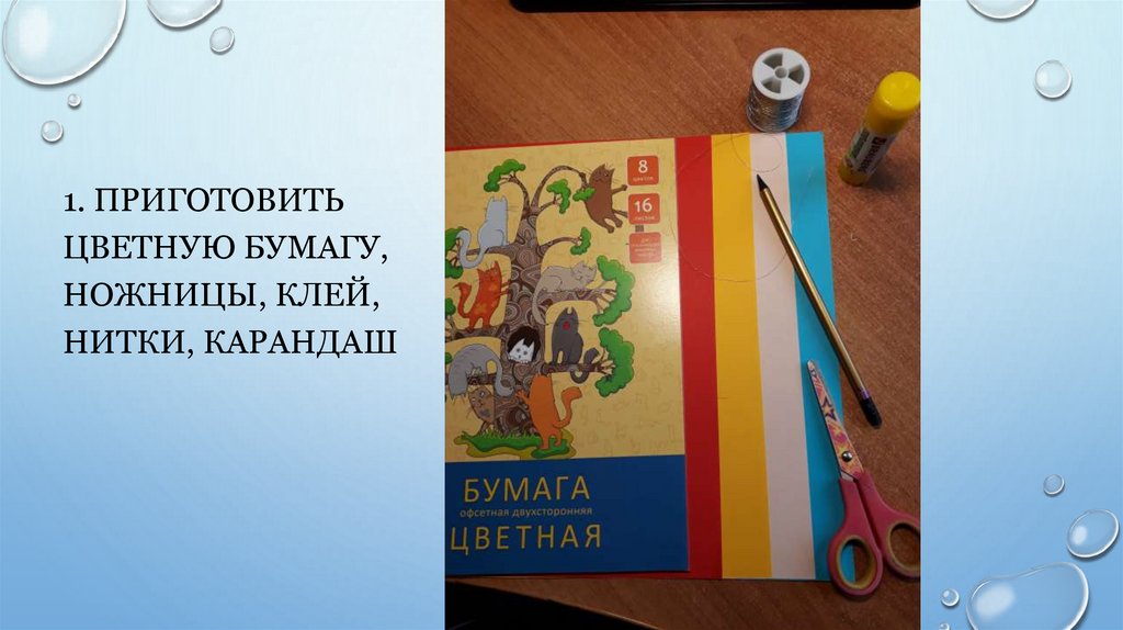 1. ПРИГОТОВИТЬЦВЕТНУЮ БУМАГУ,