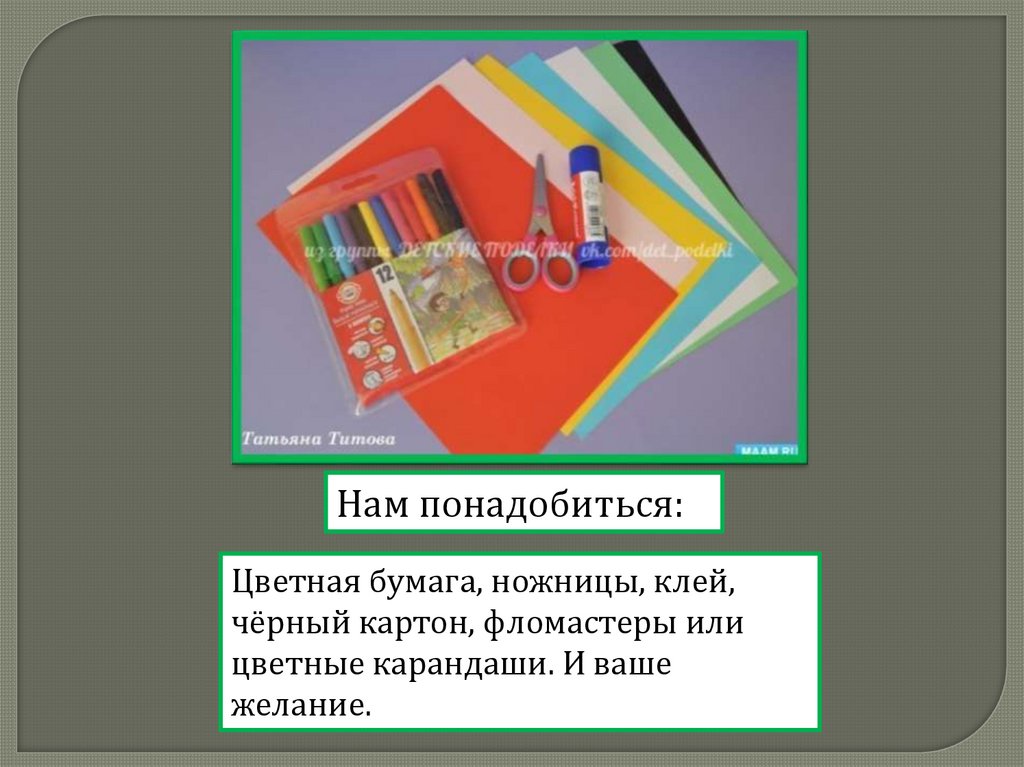Нам понадобиться:Цветная бумага, ножницы, клей,