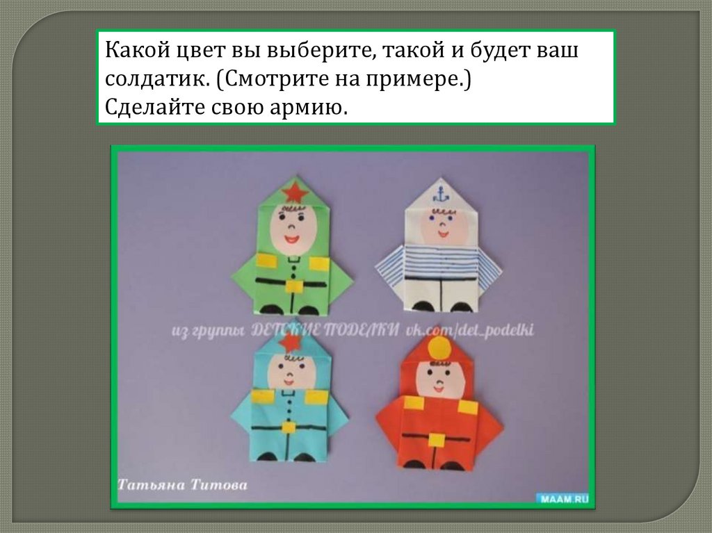 Какой цвет вы выберите, такой и будет вашсолдатик. (Смотрите на примере.)