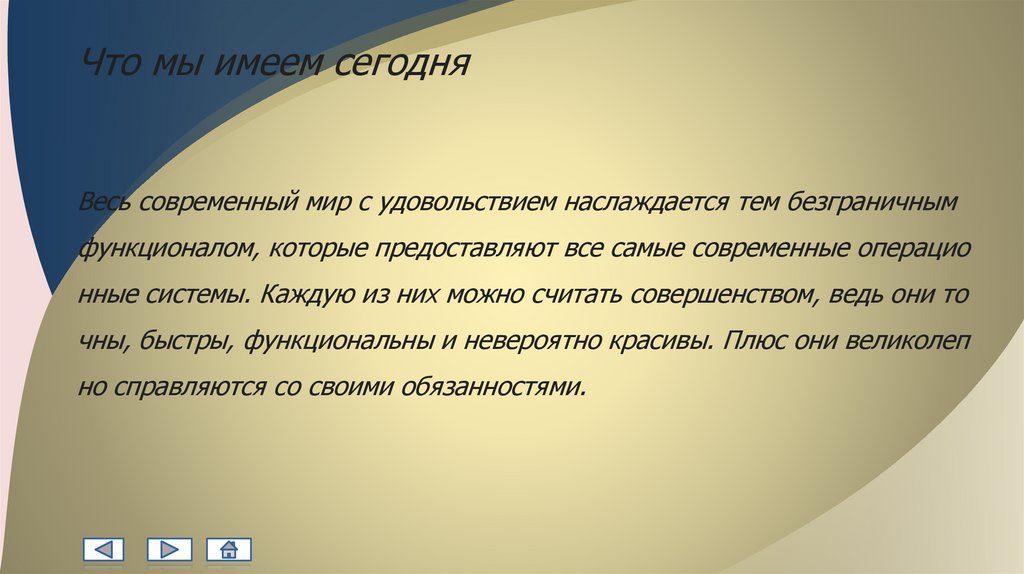Что мы имеем сегодняВесь современный мир с удовольствием наслаждается тем безграничным