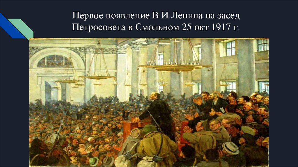 Первое появление В И Ленина на заседПетросовета в Смольном 25 окт 1917 г.