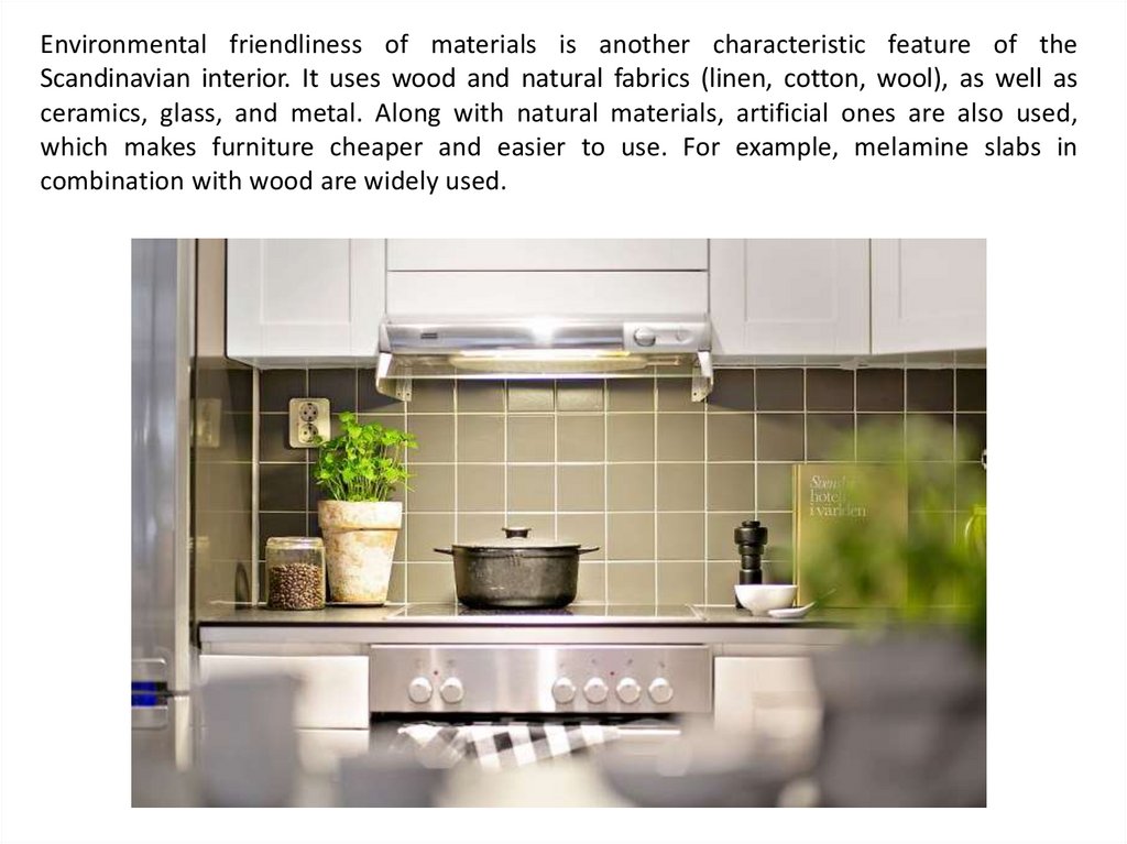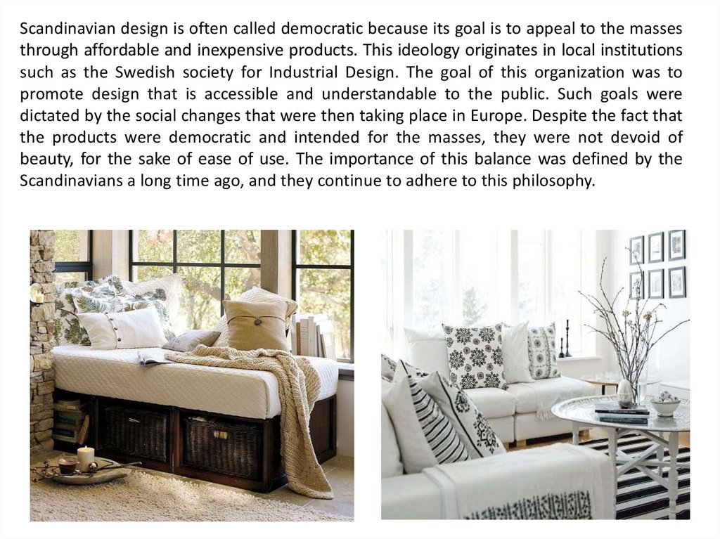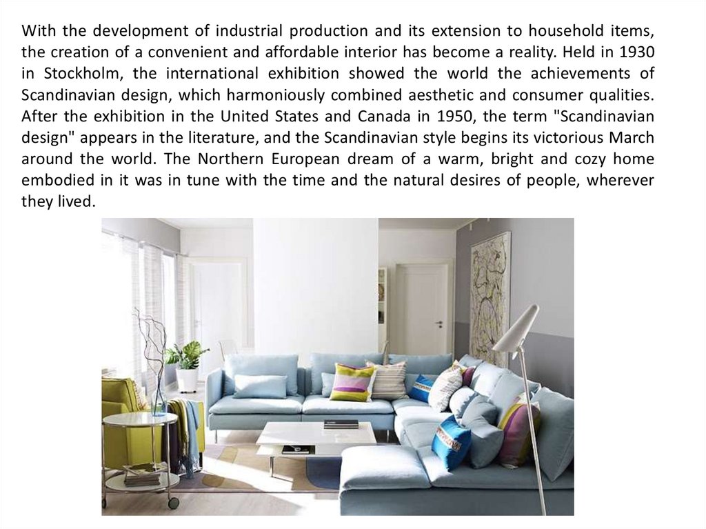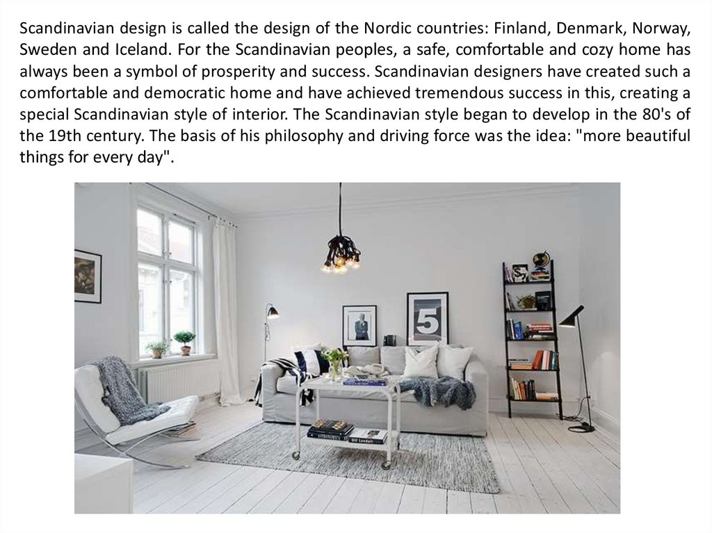 special Scandinavian style of interior. The Scandinavian style began to develop in the 80's of