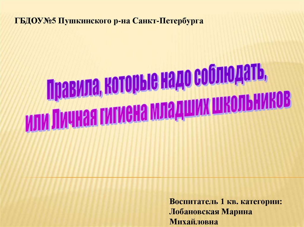 ГБДОУ№5 Пушкинского р-на Санкт-ПетербургаВоспитатель 1 кв. категории:
