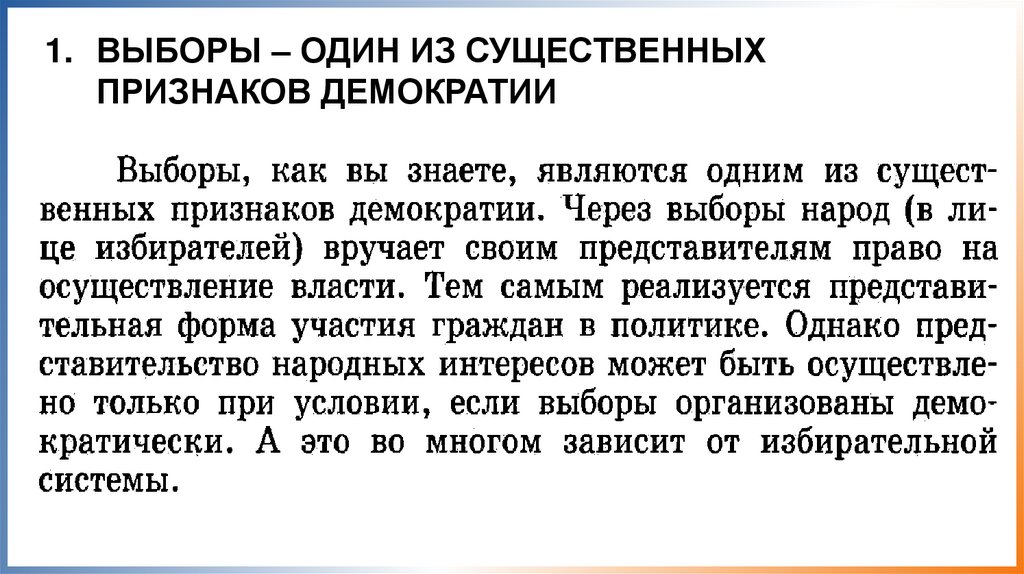 1. ВЫБОРЫ – ОДИН ИЗ СУЩЕСТВЕННЫХПРИЗНАКОВ ДЕМОКРАТИИ