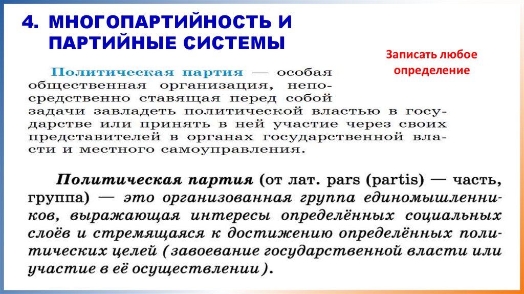 4. МНОГОПАРТИЙНОСТЬ И ПАРТИЙНЫЕ