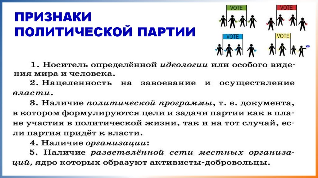 ПРИЗНАКИПОЛИТИЧЕСКОЙ ПАРТИИ