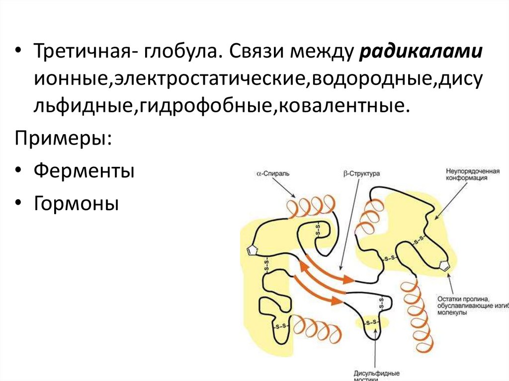• Третичная- глобула. Связи между радикаламиионные,электростатические,водородные,дису
